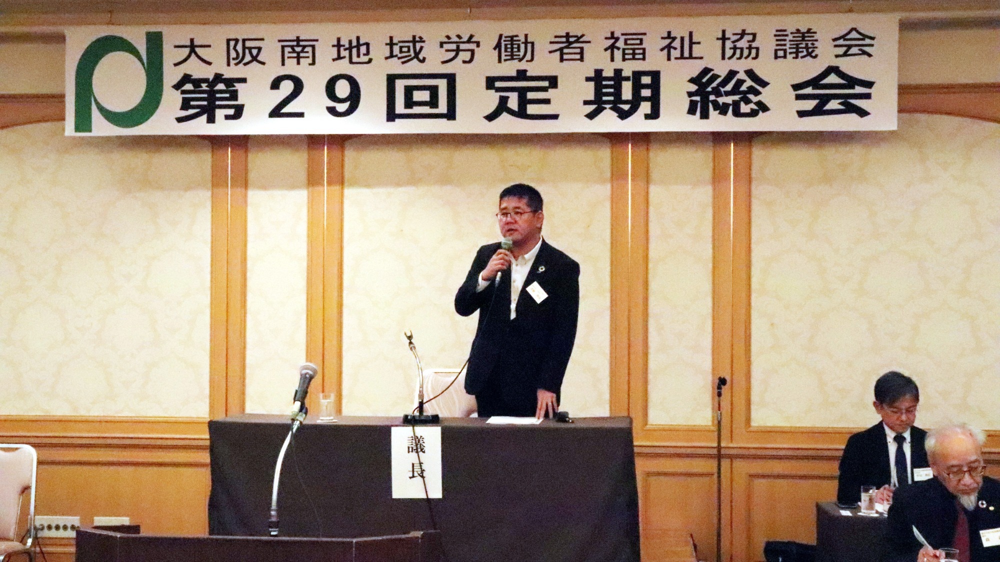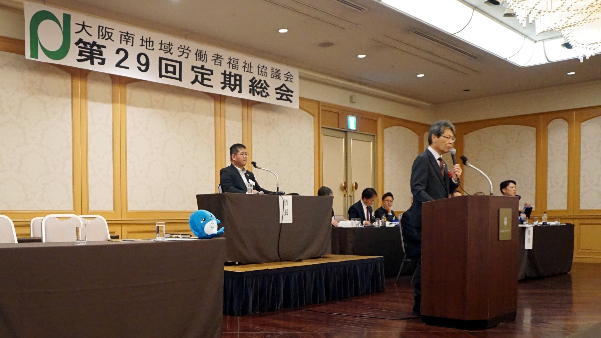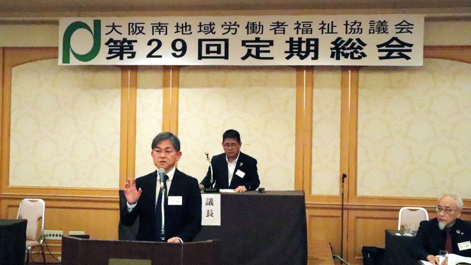 ホテルアゴーラリージェンシー大阪堺にて、第29回定期総会を開催しました。冒頭、大阪労福協 黒田専務理事よりご祝辞を頂戴しました。