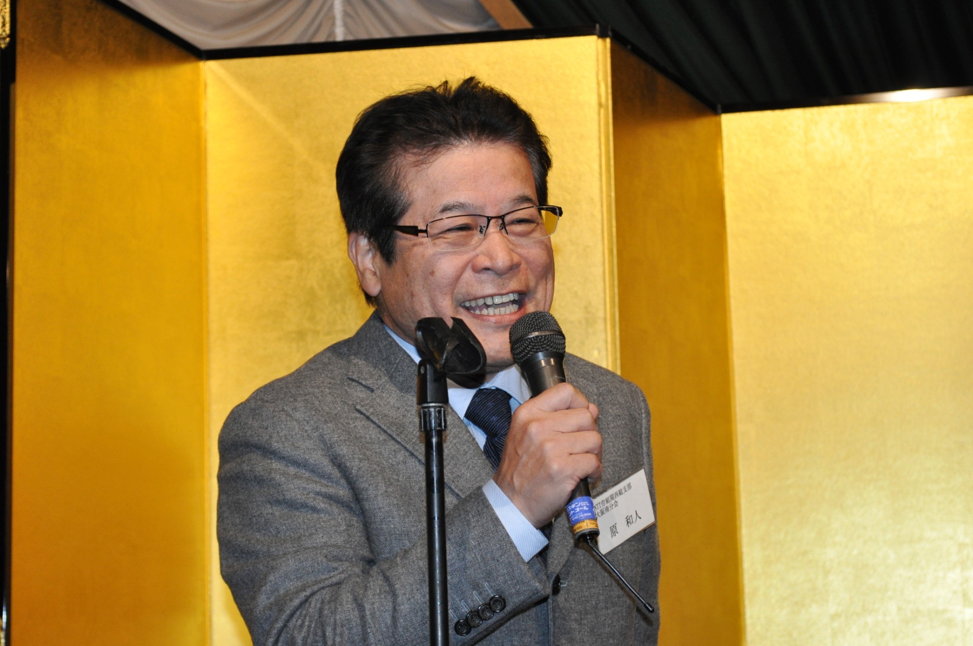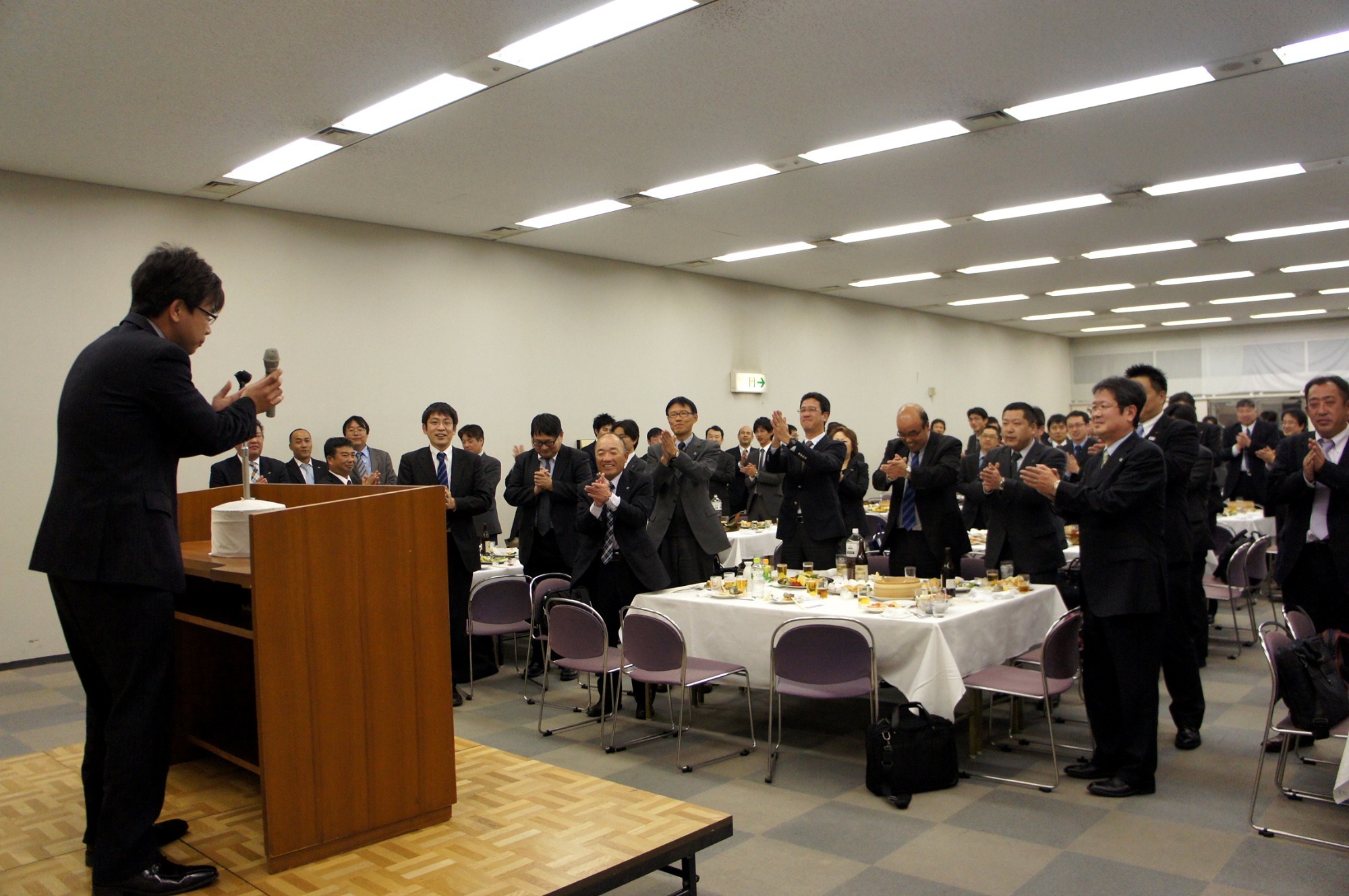 終盤では、恒例となっている役員挨拶を兼ねた企業の営業広報活動が展開され、最後は田中副議長の閉会の挨拶、田中副議長と退任された山中前議長代行のコラボ発声での「団結がんばろう!」で締めくくられました。