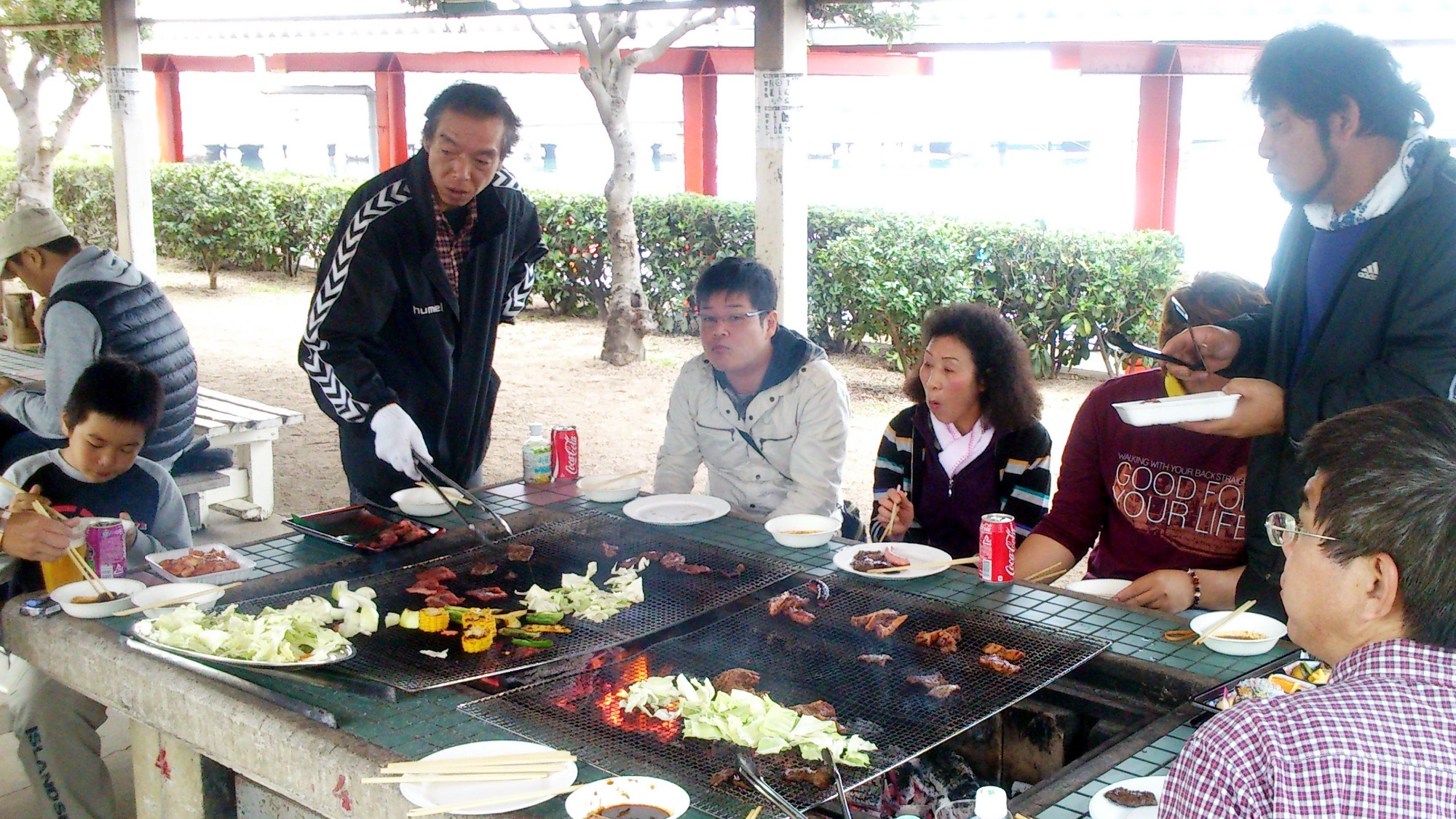 大阪南鎌倉議長のご挨拶で開会し、早速バーベキュー開始です。みんな午前中の清掃活動でお腹が空いていたのか、すごい勢いでお肉もご飯も無くなっていきました・・・。