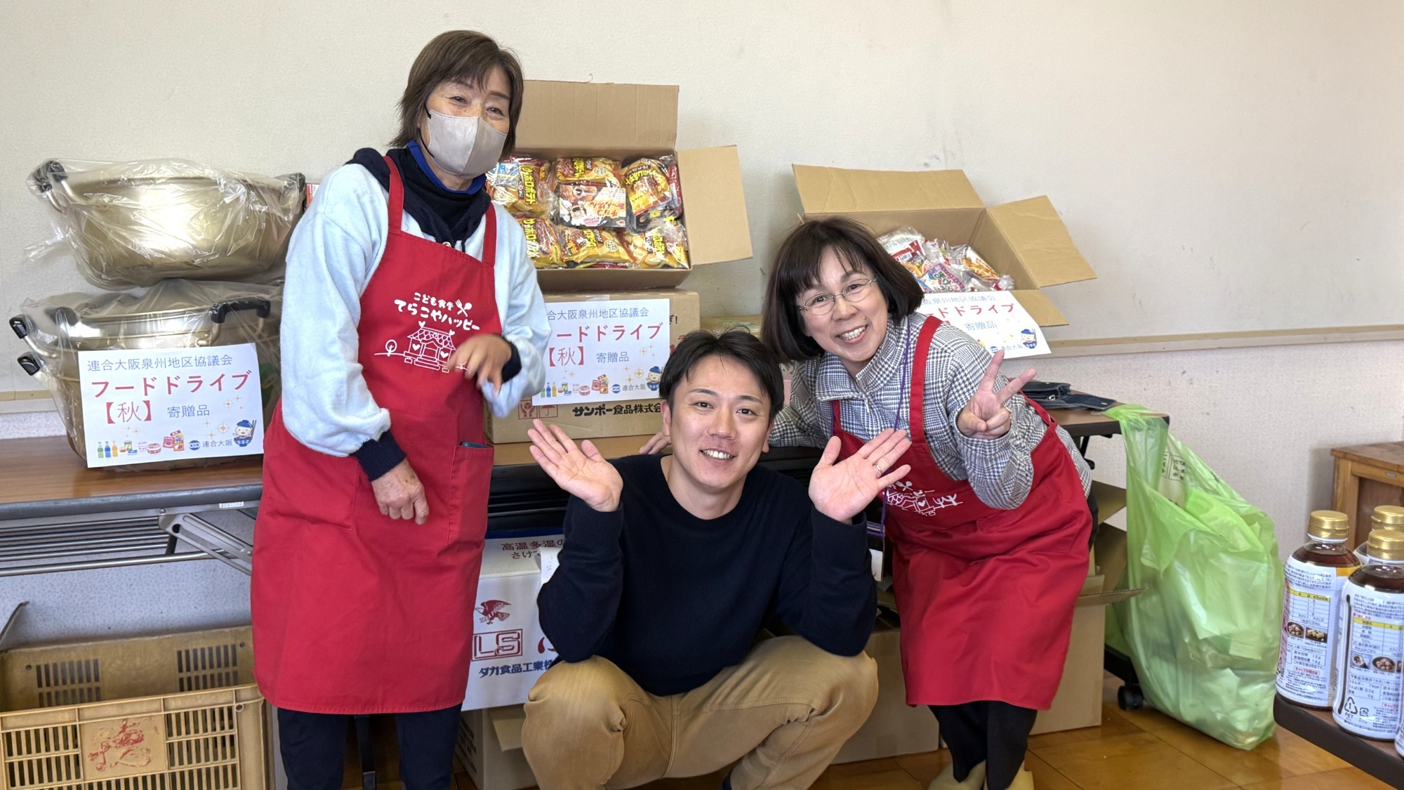 式典中には、堺市社会福祉協議会さかいこども食堂ネットワーク事務局の松本様にお越しいただき、フードドライブの取り組みについてお話しいただきました。会場にて参加者に持ち寄っていただいた食材をお渡しし、こども食堂への寄贈をお願いしました。