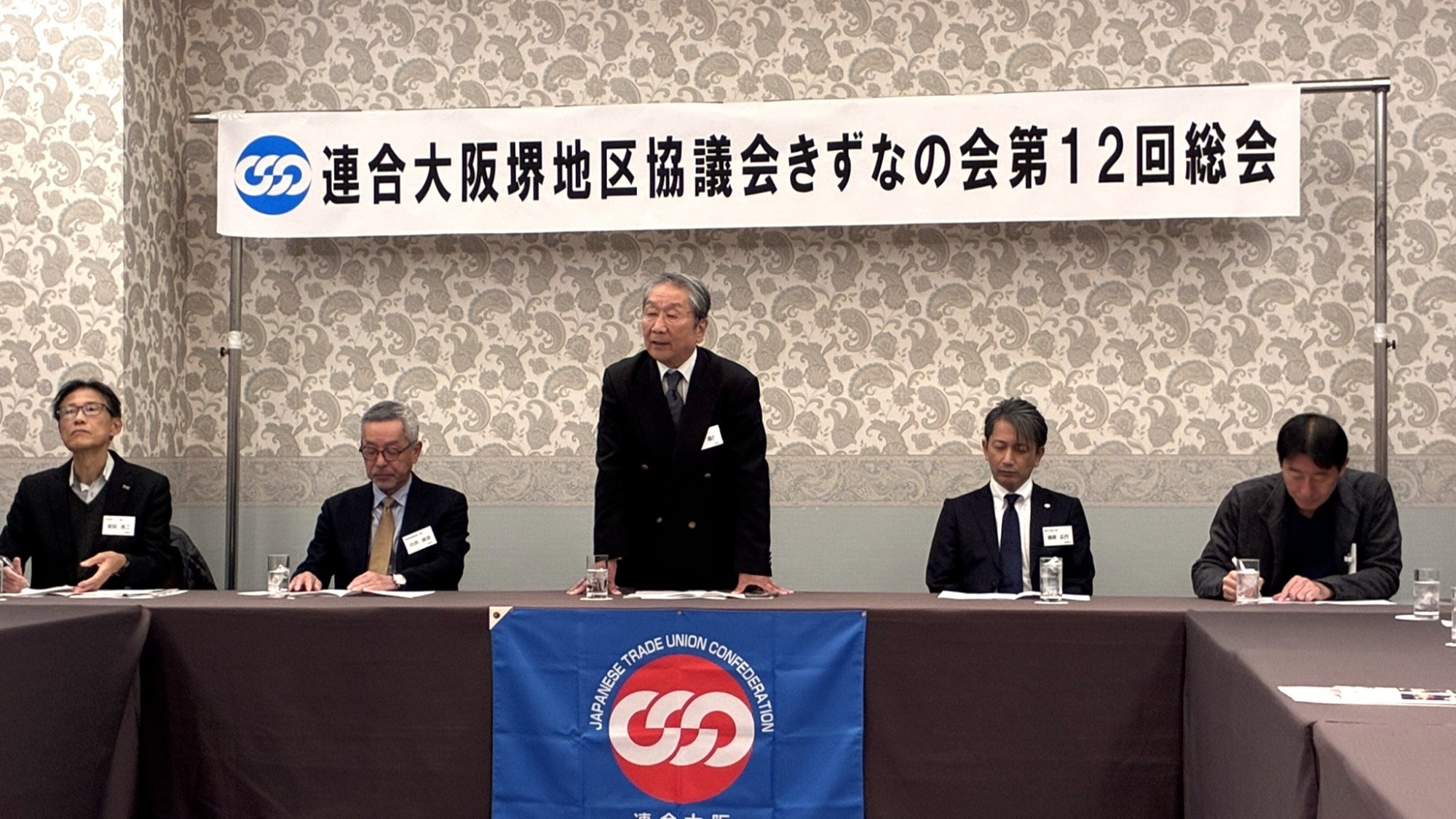 2025年11月28日(金)16時より、ホテルアゴーラリージェンシー大阪堺において、連合大阪堺地区協議会 第27回定期総会を開催いたしました。定期総会では、第36年度活動経過報告・決算報告・会計監査報告を承認いただいた後、5つの議案について審議し、全議案を満場一致で可決いただきました。