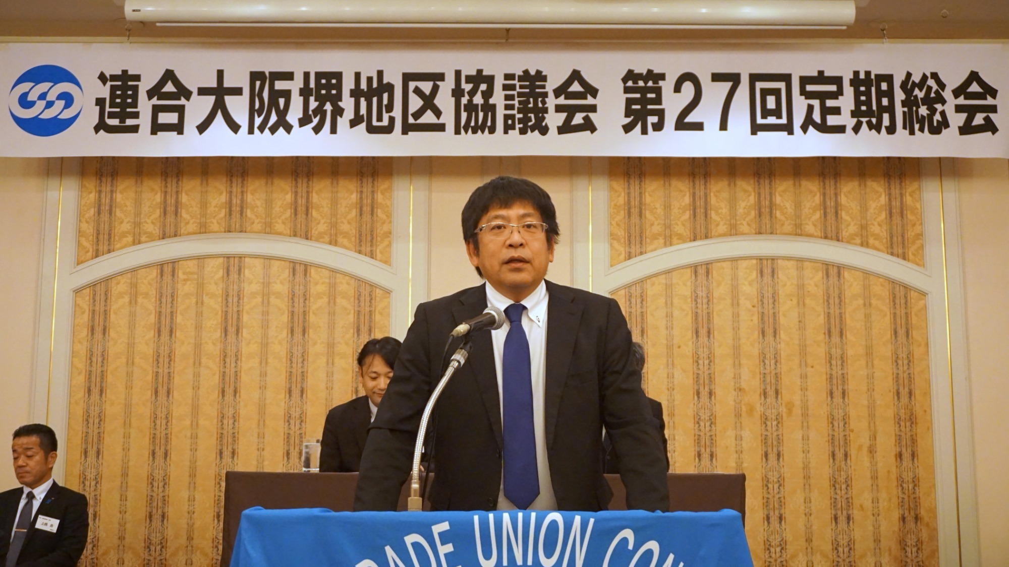 | 総会議長 | UAゼンセン コーナン商事ユニオン 藤山さん 私鉄総連 南海電鉄労組 上尾さん |