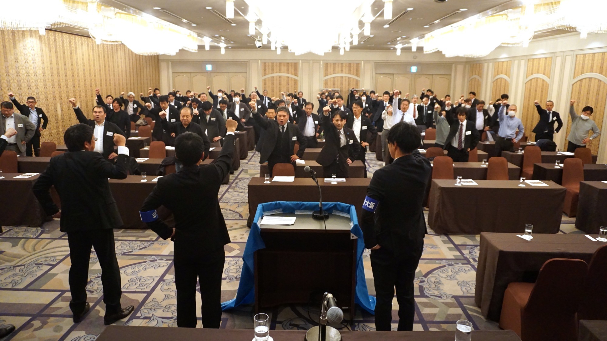 最後は平間実行委員長によるガンバロー三唱で一致団結を確認し、式典は無事終了いたしました。