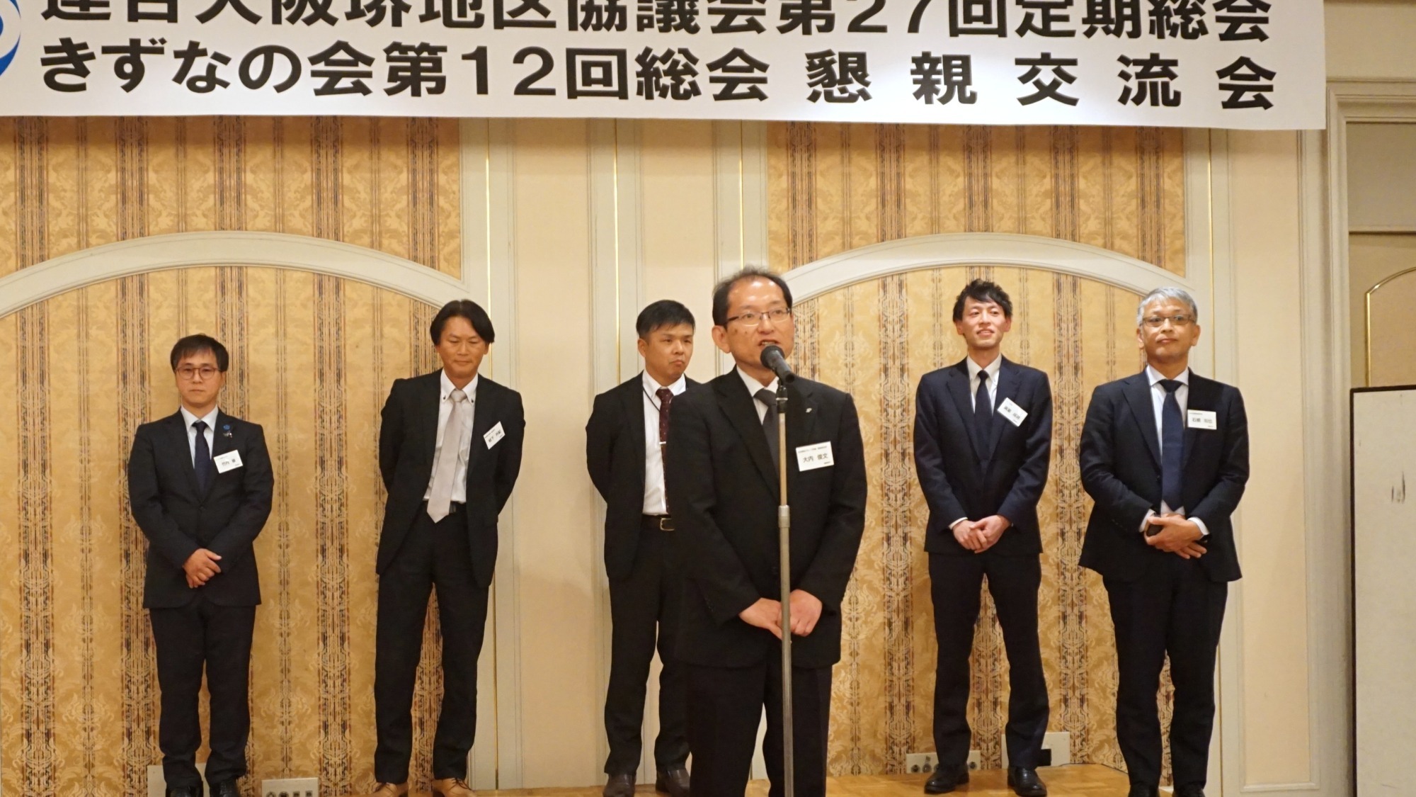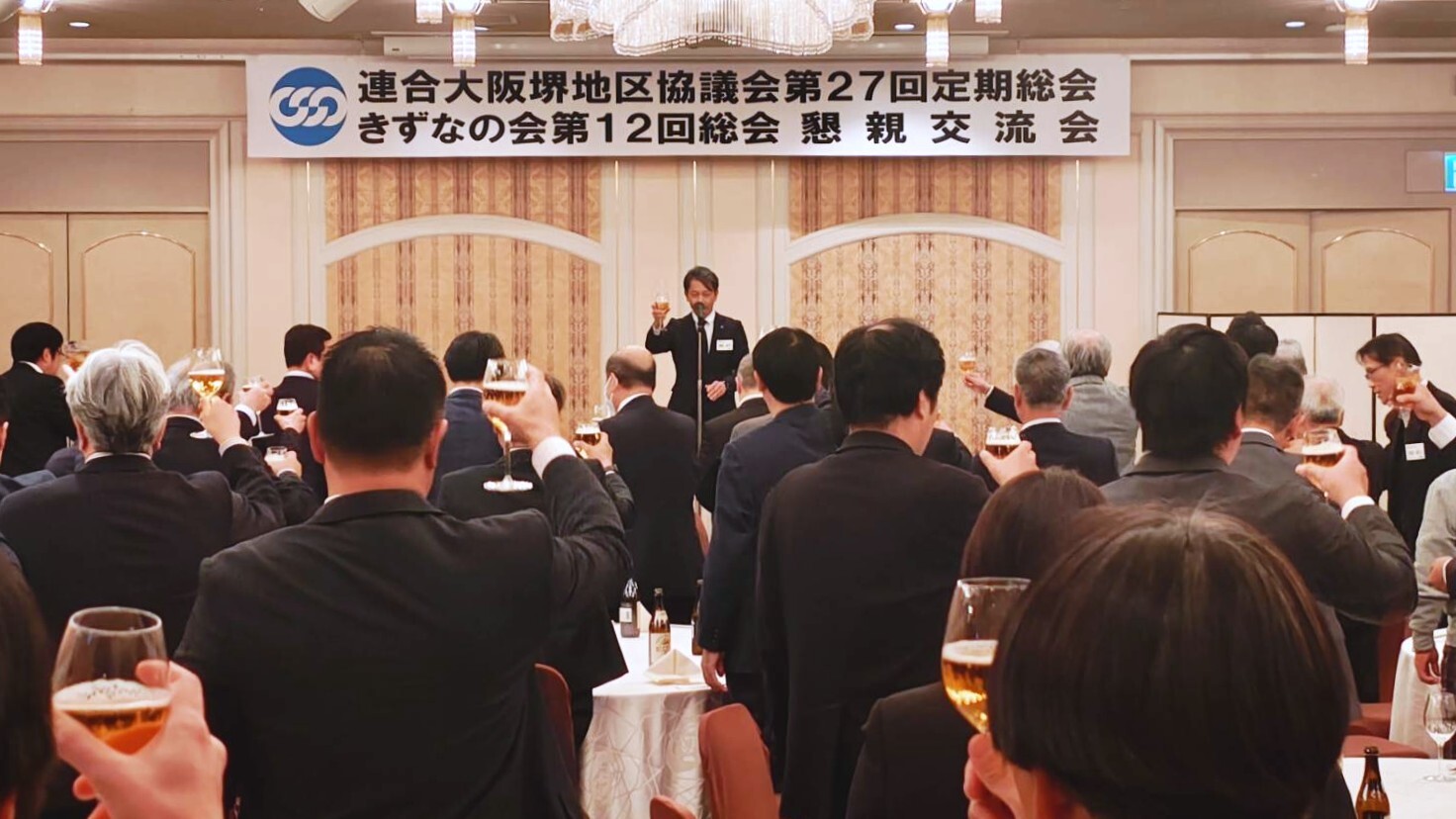 懇親会の流れとしては、新しく幹事長に就任された渕上議員の司会により、大阪南きずなの会 森本会長の乾杯で始まり、中盤で推薦議員ひとりひとりから熱い挨拶を頂戴し、大毛相談役の閉会挨拶後、森代表幹事の「団結ガンバロー」で締めくくられました。